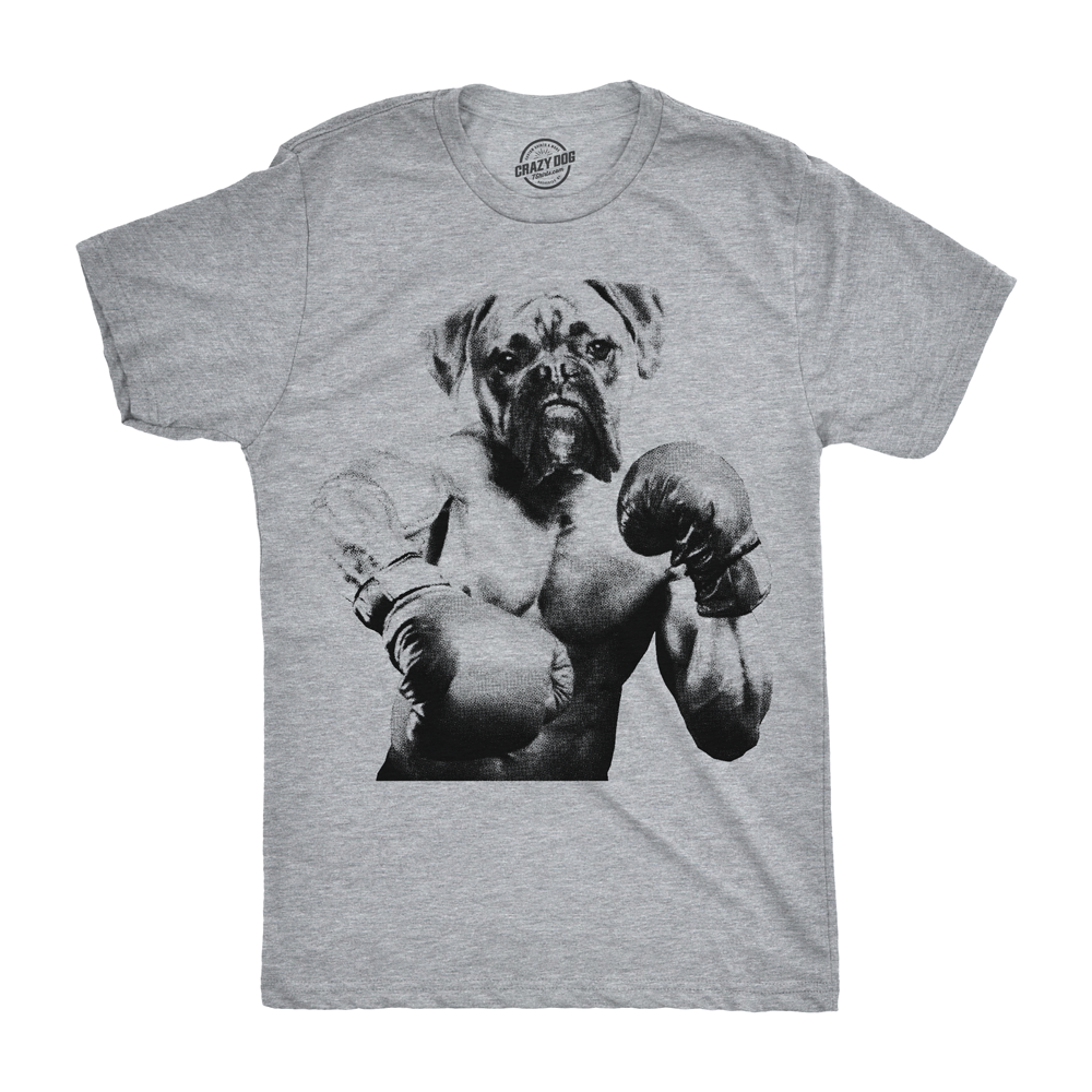 In the red corner… This funny men’s graphic t-shirt is for boxing fans and dog lovers. It is slim fit & comfortable. Featuring a hilarious boxer boxing pun and dog joke for adults. Looking for an affordable gift idea for him? Buy this epic men’s meme tee!